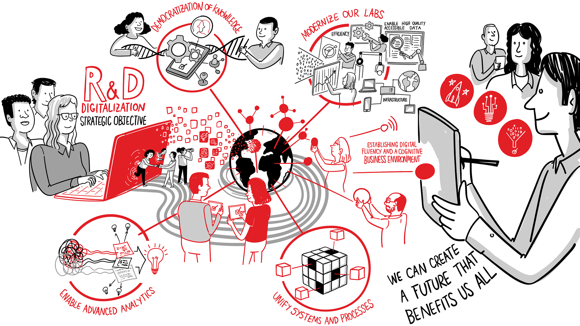 Narrative illustration project about the improvements in the People and Development area of a large multinational company. This image became an animated video explaining the steps.