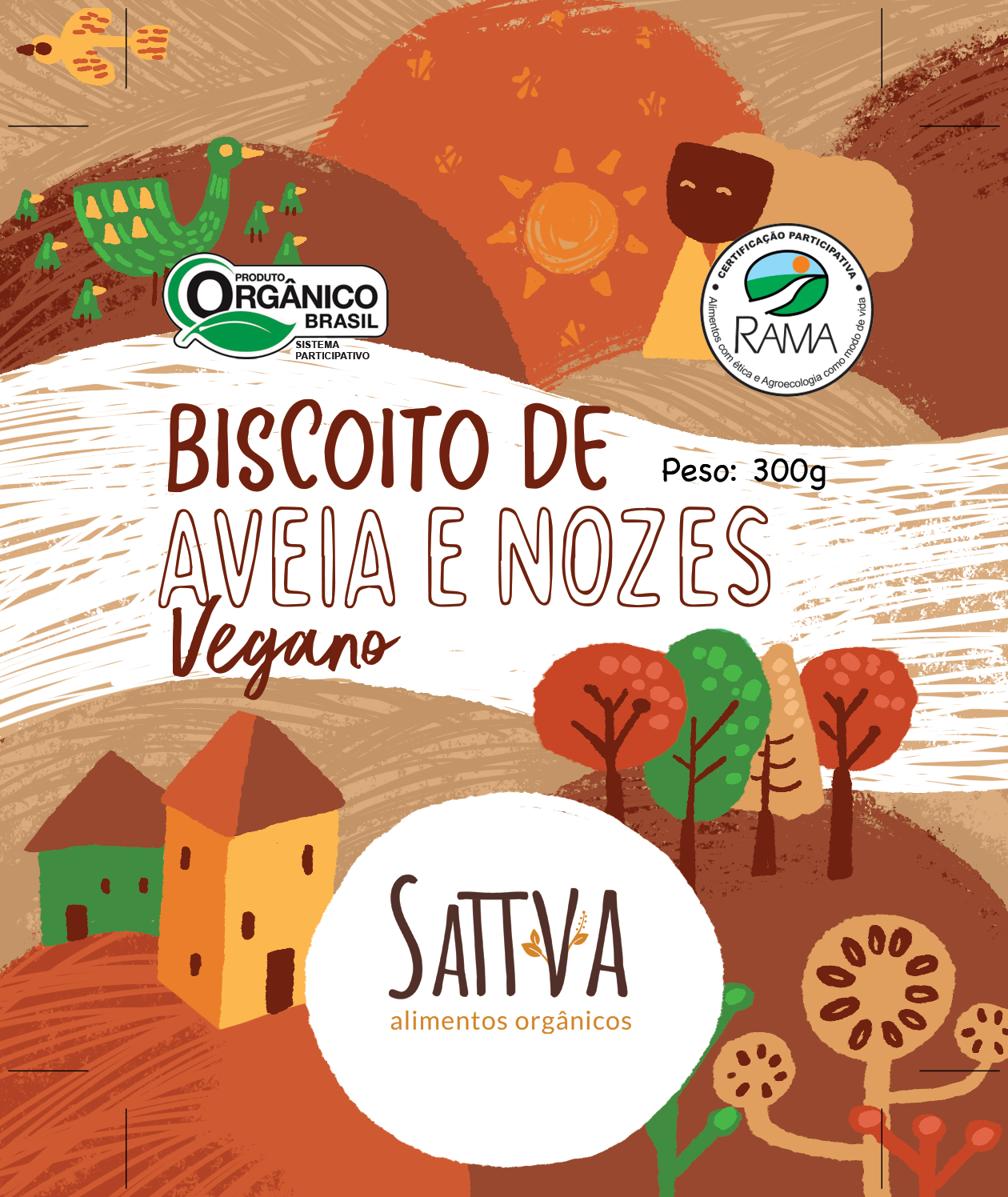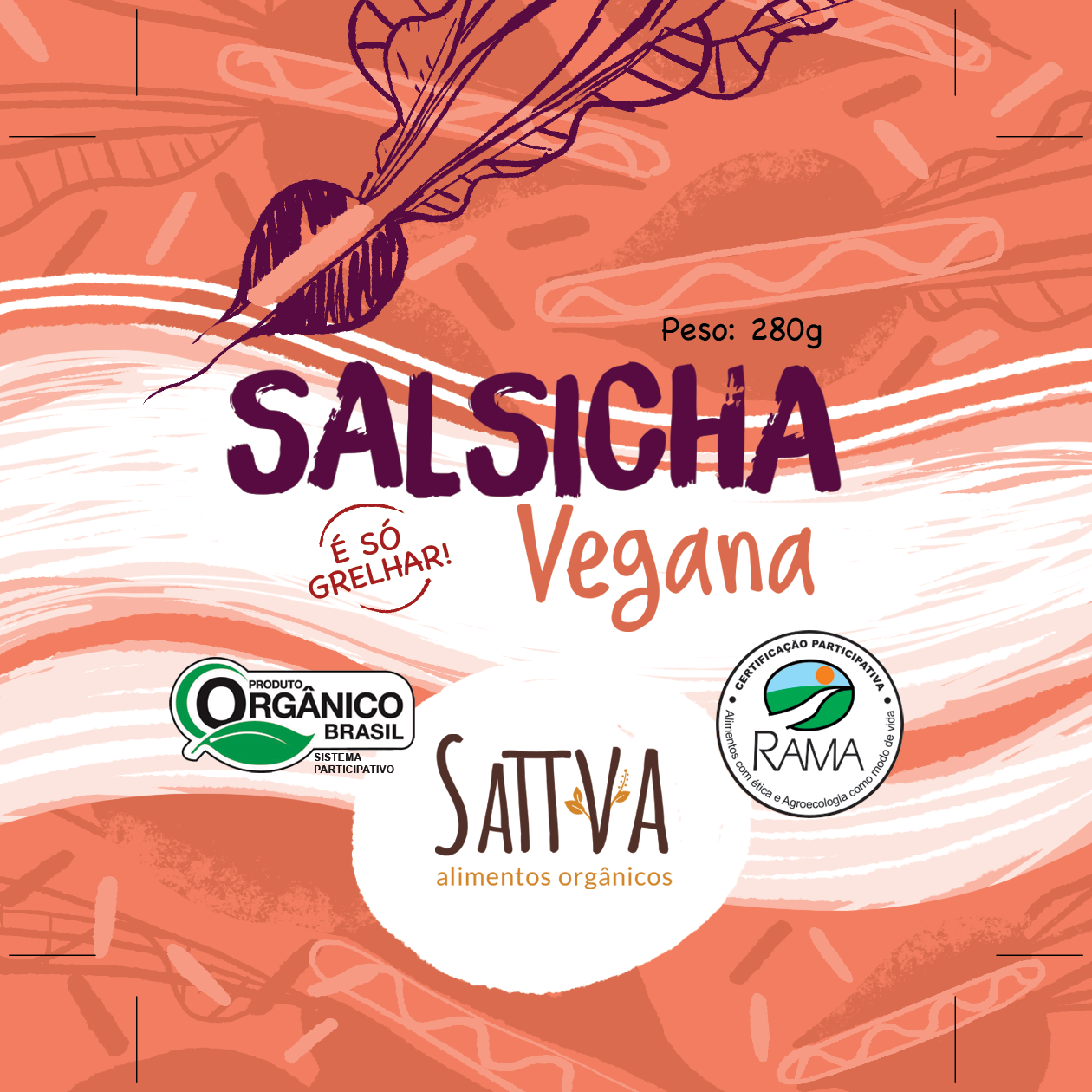 Redesign de rótulos para produtos veganos da empresa Sattva, do Rio Grande do Sul